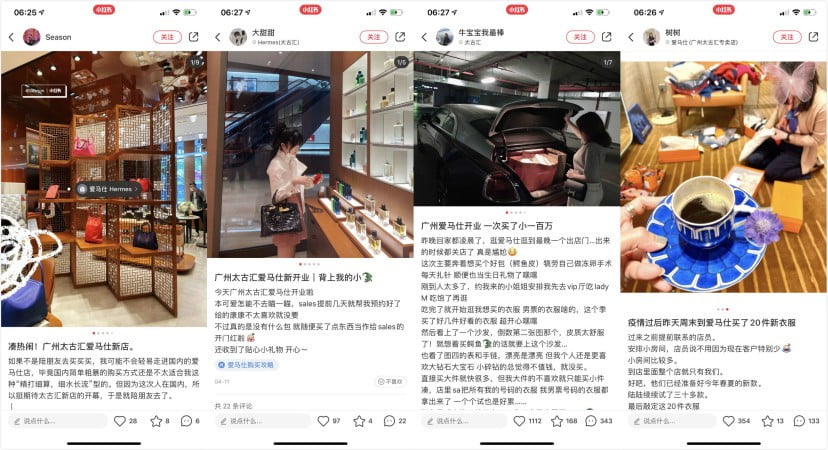 Deși oficialii Hermes nu au comentat încă acest fapt, Atomniu, un utilizator celebru al platformei de ecomerce Xiahongshu, a postat mai multe fotografii din magazin adăugând că a cheltuit 142.124 de dolari în prima zi de la deschidere, pe o geantă Birkin 30 din crocodil, neagră, alături de alte haine și pantofi.