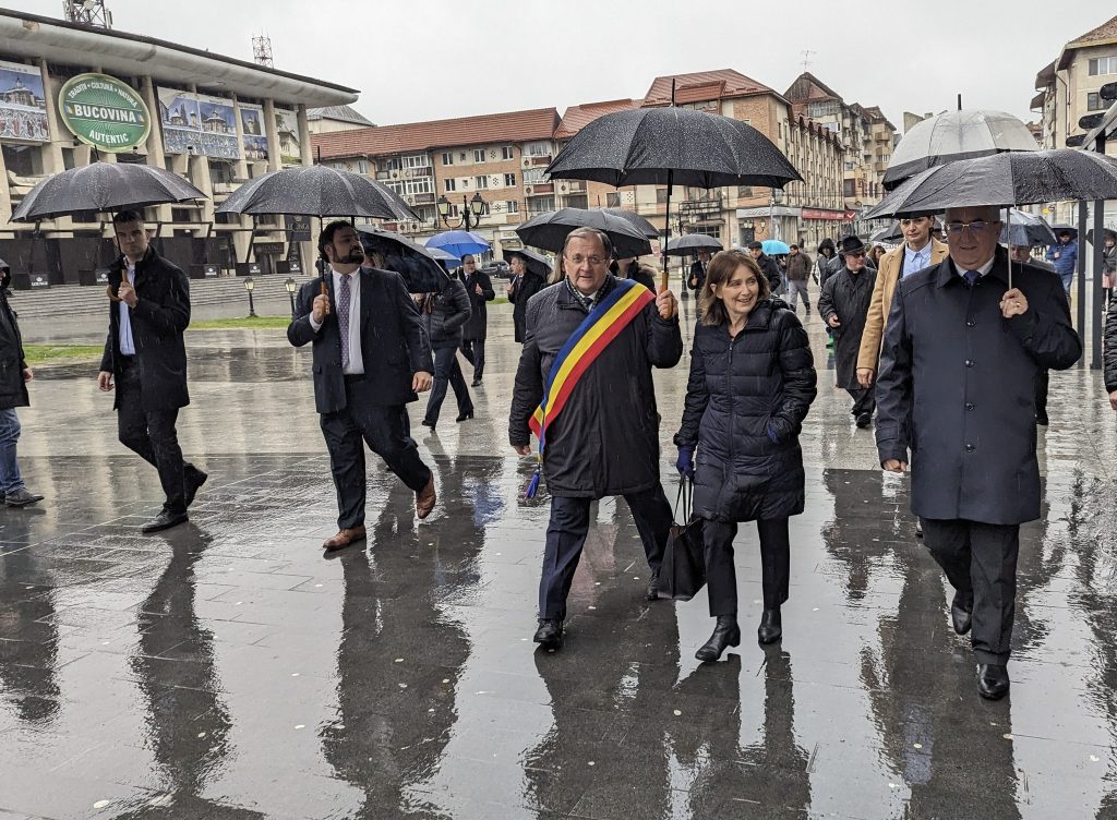 La Suceava, doamna ambasador Kavalec și invitații săi au înfruntat ploaia pentru a inaugura expoziția de fotografie în aer liber „Noi, poporul” pe esplanada Casei de Cultură Suceava. Expoziția sărbătorește 25 de ani de parteneriat strategic între SUA și România, subliniind modul în care poporul american și cel român colaborează în domeniul securității, economiei și culturii. Expoziția este deschisă vizitatorilor până în 10 aprilie 2024 și intrarea este gratuită! Vă încurajăm să vizitați expoziția și să vă faceți un selfie cât timp sunteți acolo.