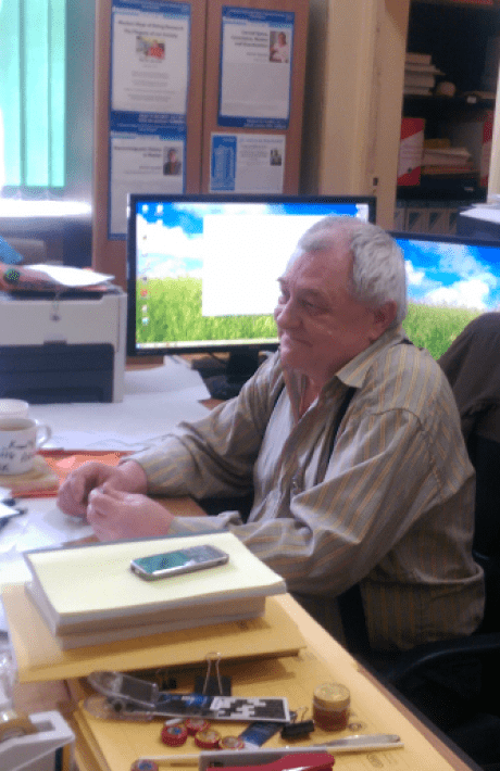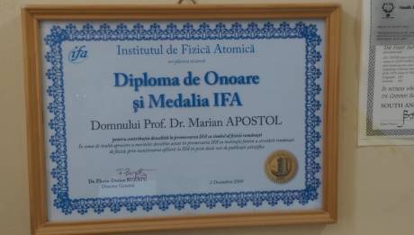 L-am găsit pe Profesorul Dr. Marian Apostol, cercetător științific al Institutului și autor a peste 33 de cărți de specialitate, într-un birou comunist, ticsit de orice de la cărți, tratate, reviste de specialitate, câteva computere, pereți „zugrăviți” cu diplome, căni de ceai cu formule din fizică.. un haos metafizic în care pe tablă (da, era și o tablă de școală!) erau scrise atât citate din latină, cât și formule matematice și fizice analizate, uneori, cu foști studenți, actualmente profesori universitari sau cercetători la rândul lor.