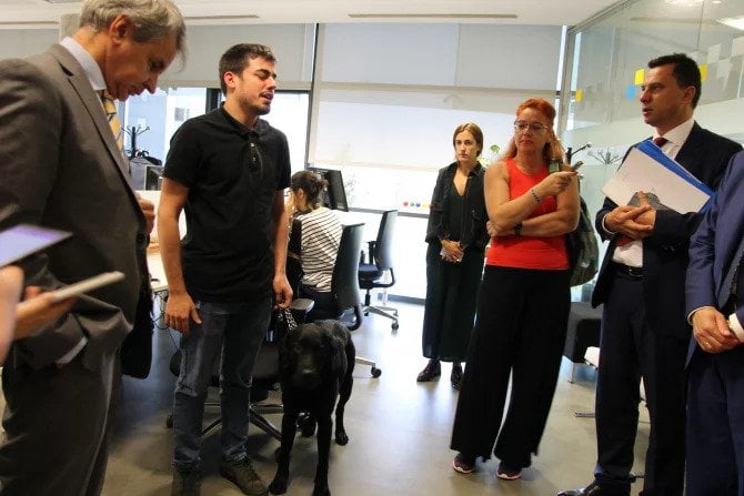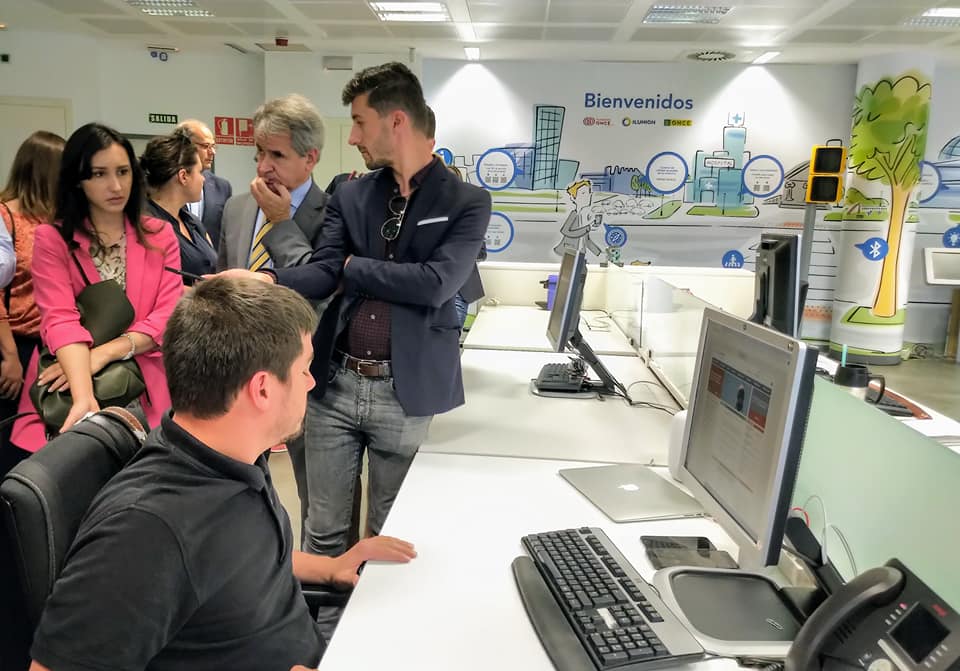ONCE este o mare fundație spaniolă cu activitate de zeci de ani, care dezvoltă proiecte de incluziune socială a persoanelor cu dizabilități. Am vizitat o companie din cadrul ONCE, unde am întâlnit un tânăr orb care dezvoltă servicii de accesibilizare a paginilor web pentru persoanele cu deficiențe de vedere. Însoțit la birou de prietenul său, un câine de toată frumusețea, Pedro Esquiva ne-a arătat cu ce se ocupă. Cu doar câteva click-uri, reușește să-și controleze de la distanță casa.