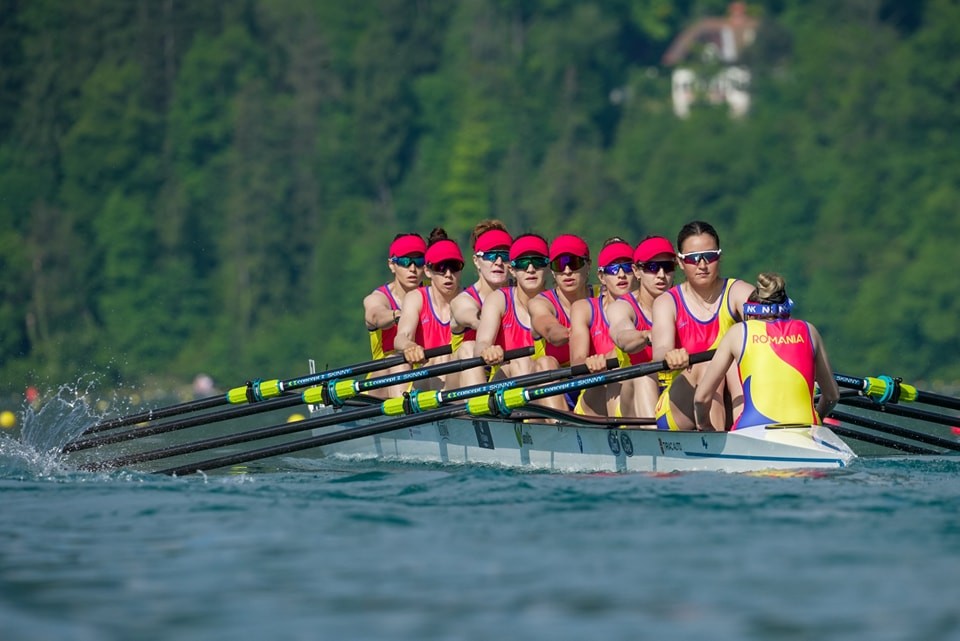 România a cucerit aurul în proba feminină de 8+1, duminică, la Campionatele Europene de canotaj de la Bled (Slovenia).
