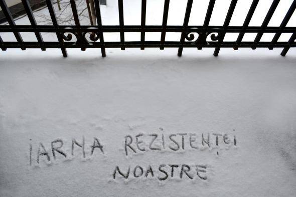 A noua zi de proteste în Piața Victoriei. 10.000 de protestatari au venit înarmați cu lopeți și au deszăpezit zona. Oamenii scandează...
