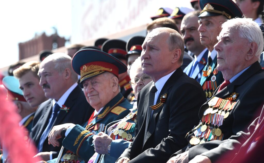 Iunie 2020. Președintele Belarus, Alexandr Lukasenko, participă la Parada celei de-a 75 a aniversări a Zilei Victoriei, la Moscova, alături de Președintele Rusiei, Vladimir Putin. Foto Kremlin.ru