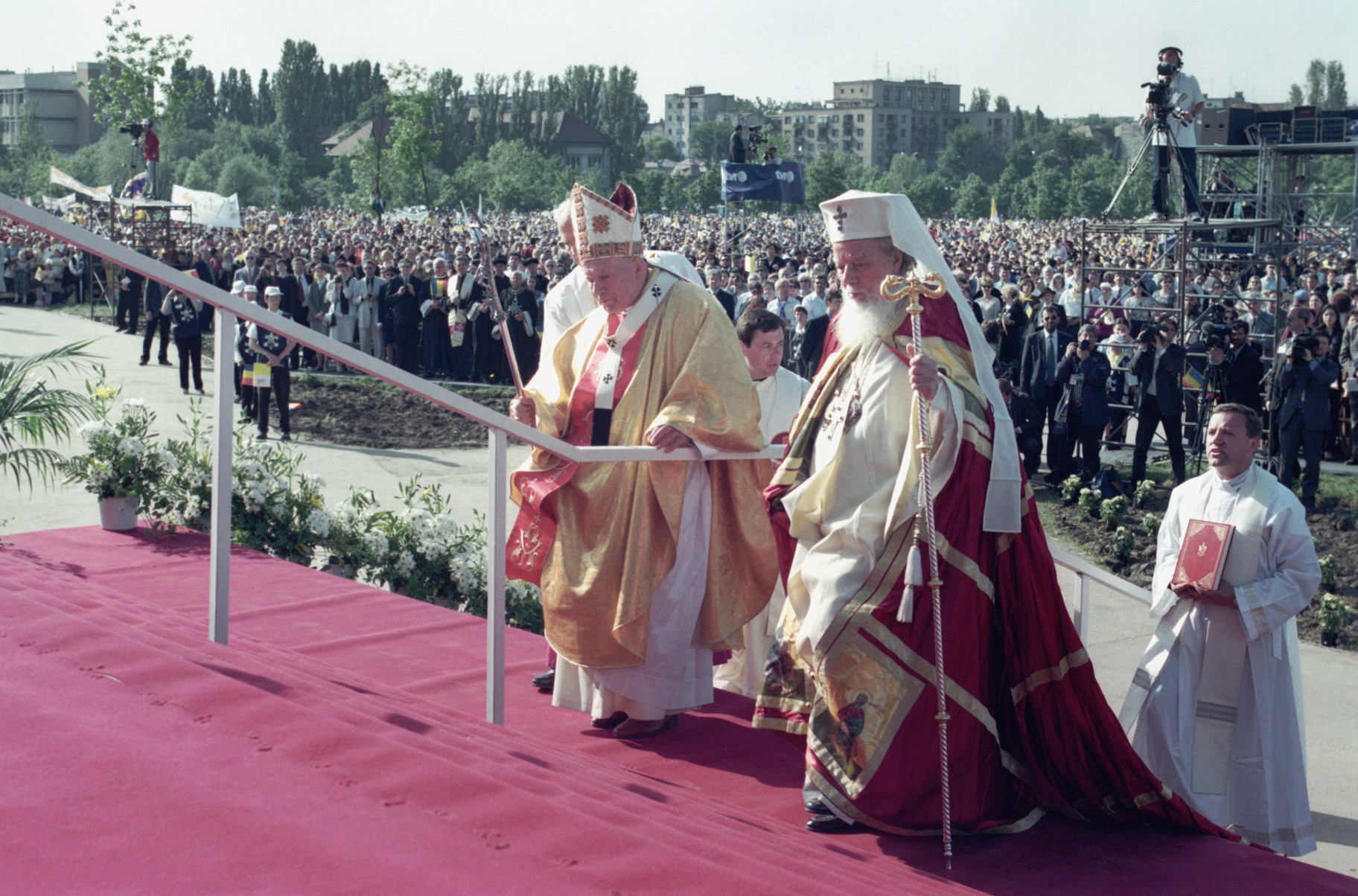 Cererea a fost aprobată cu entuziasm, însă nu mult după aceea am fost brutal rechemat de d-l Iliescu, abia instalat într-un nou mandat prezidențial: trebuia cumva să fiu pedepsit, pentru că prima vizită a unui Suveran Pontif într-o țară majoritar ortodoxă nu fusese ceva bun pentru România, ci doar pentru Emil Constantinescu (eu eram, cum necum, omul CDR)…