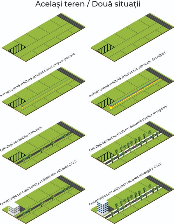O altă măsură luată pentru a putea asigura realizarea rețelelor edilitare la capacitatea propice dezvoltării este de a limita temporar accesul la utilizarea coeficientului de utilizare al terenului, până la jumătate din valoarea inițială, până la realizarea infrastructurii conform studiului coordonator.