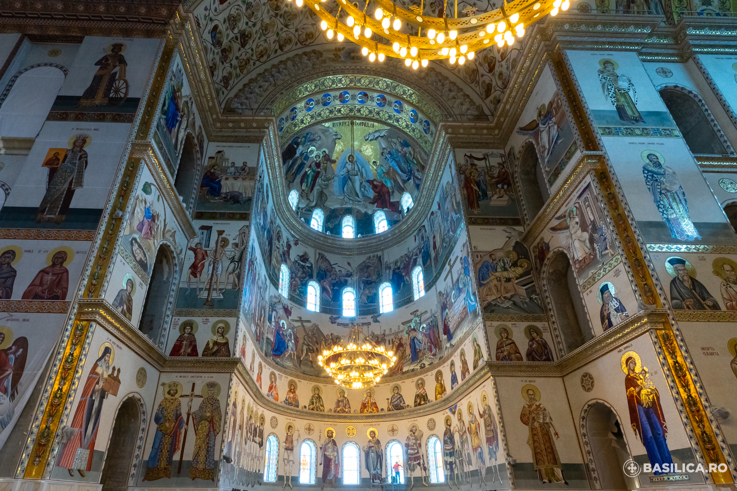 - Iconostasul – având o suprafață de 406,98 mp, cu o lungime de 23,8 metri și o înălțime de 17,1 metri, cuprinde 45 de icoane, dispuse în patru registre.