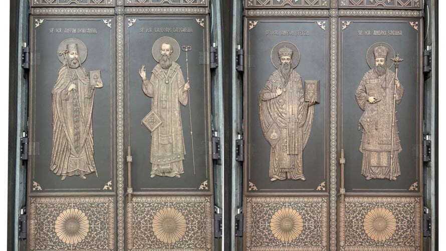 Cei peste 50 de sfinți, reprezentați sculptural pe fiecare ușă de bronz, care, asemenea unor străjeri, veghează Catedrala Națională, rămân martori tăcuți, dar nu mai puțin prezenți, ai sfințeniei acestui loc, biserica lui Hristos, casă a Preasfintei Treimi.