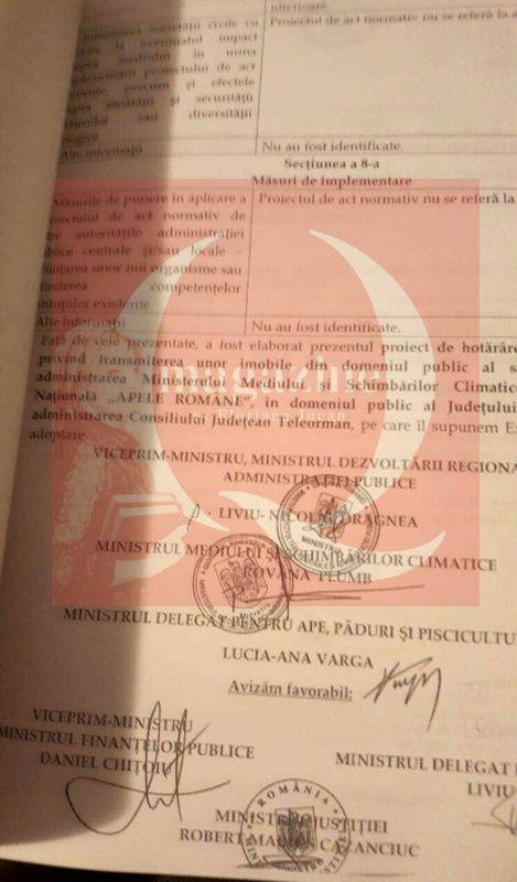 După cum se poate observa, Hotărârea de Guvern H.G. 858/2013 din 6 noiembrie 2013, la care face referire Direcția Națională Anticorupție acuzând schimbarea regimului unei insule care ar fi fost trecută ilegal din patrimoniul statului în cel al Consiliului Județean Teleorman, pentru ca, ulterior, să fie dată spre administrare unei firme private din același județ, este semnată FĂRĂ OBIECȚII de ministrul Finațelor, Daniel Chițoiu, de ministrul Apelor, Lucia-Ana Varga, de ministrul Mediului, Rovana Plumb, de Ministrul Justiției, Robert Cazanciuc și de Ministrul delegat pentru buget, Liviu Voinea.