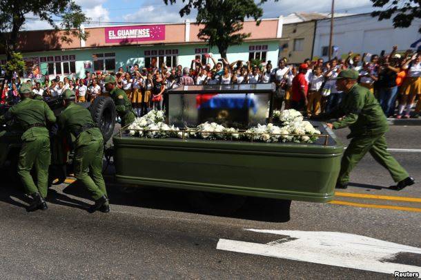 Funeraliile au fost conduse de fratele lui Fidel, Raul Castro, actualul preşedinte al Cubei, care a depus urna care conţinea cenuşa lui Fidel Castro în mormântul acestuia, marcat printr-o plăcuţă pe care scrie “Fidel”.