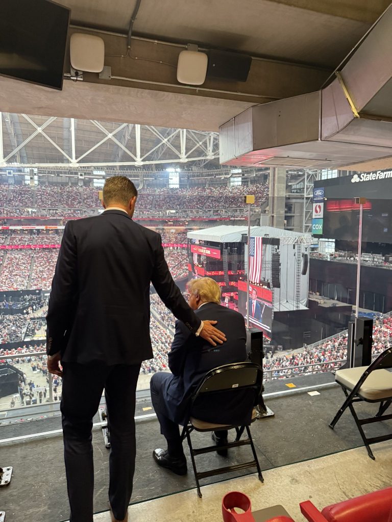 La intrarea pe stadion, participanții au scandat „SUA, SUA”, în cinstea lui Trump.