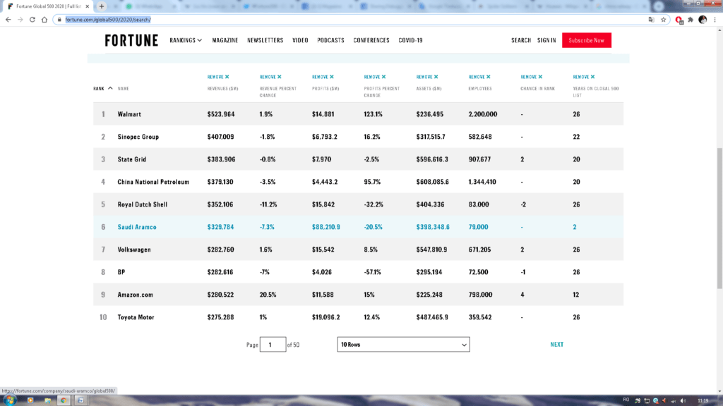 Pe locul 2 în topul Fortune 500 s-a poziționat compania chineză de petrol și gaze Sinopec Group. Pe locul 4 se află China National Petroleum, pe 18- China State Construction Engineering, pe 21 Ping An Insurance, pe 24 – Industrial&Commercial Bank of China, pe 30 – China Construction Bank. Locul 35 este ocupat de Agricultural Bank of China. Bank of China ocupă locul 40 în topul Fortune. Pe locul 45 se află China Life Insurance, iar pe locul 50 se poziționează China Railway Engineering Group.