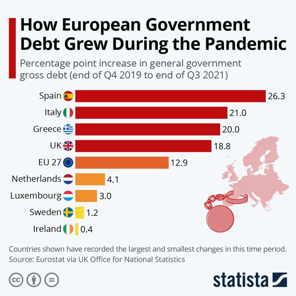 Cum sunt guvernele europene subordonate bancherilor, poate că ar fi un titlu mai bun. O prezentare realizată de Statista, pe baza datelor Eurostat a generat câteva reacții și o sumedenie de discuții.