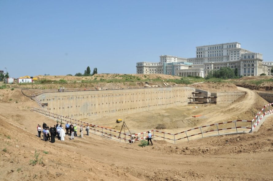 Așa arăta șantierul Catedralei Naționale în vara anului 2011, când Patriarhul Daniel a făcut o vizită la locație. Sursa foto: Ziarul Lumina