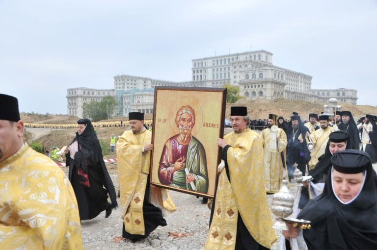În 2011, procesiunea cu capul Sfântului Andrei, Ocrotitorul României, a fost urmată de sfințirea Paraclisului Catedralei Naționale, pentru a susține prin rugăciune lucrările de pe șantier. Sursa foto: Ziarul Lumina