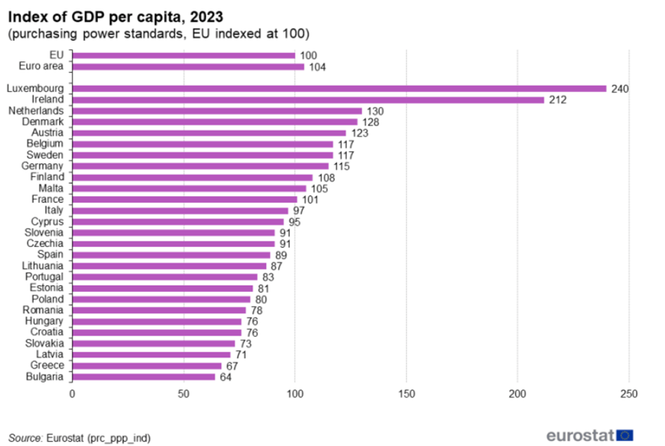 De curând, ni s-a dat o veste care ar fi trebuit să ne umple de mândrie și să ne accentueze o stare de mulțumire pe care se presupune că am fi avut-o deja. Vestea respectivă sună cam așa: În anul 2023, România a depășit Ungaria la indicatorul PIB/locuitor, calculat la standardul puterii de cumpărare. Mai precis, țara noastră a terminat anul trecut la un nivel egal cu 78% din media Uniunii Europene, iar Ungaria a regresat un pic, spre nivelul de 76% din media Uniunii Europene.