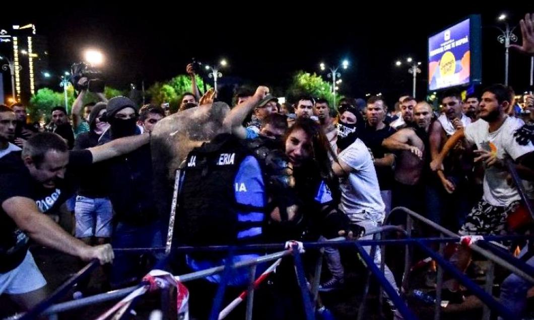 O femeie jandarm salvată de un protestatar de agresiunea altor protestatari! Jandarmeria RomânăCaptura video: Privesc.eu