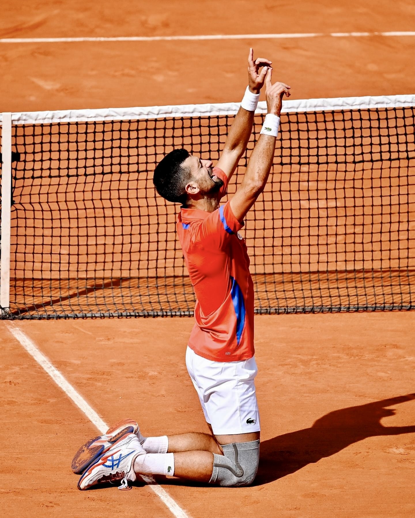 După realizarea punctului final, Nole a urlat la cer, s-a prăbușit la pământ, a izbucnit în lacrimi, și-a făcut cruce cu mâna tremurând și s-a uitat în direcția lojei familiei. De partea opusă, Carlos Alcaraz, tânărul învins (în urmă cu o lună biruia la Wimbledon contra lui Djokovic), n-a putut să acorde interviul de sfârșit de meci, din cauza lacrimilor de neputință.