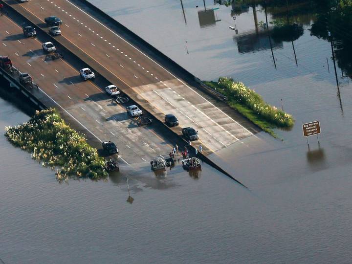 O autostradă interstatală, din apropiere de Beaumont,s-a prăbușit, iar sute de șosele și drumuri sunt scufundate sub un fluviu de ape cu valuri de peste un metru. Între timp, în mijlocul nesfârşitelor zone invadate de ape a apărut o nouă primejdie. La uzina chimică din apropiere de Houston, avariată din cauza inundaţiilor, s-a produs o serie de explozii. Iar fumul degajat „este incredibil de periculos”, după cum a avertizat directorul Agenţiei federale pentru situaţii de urgenţă. Toţi cei care locuiesc pe o rază de 2 kilometri şi jumătate, în jurul fabricii din orăşelul Crosby, au fost evacuaţi
