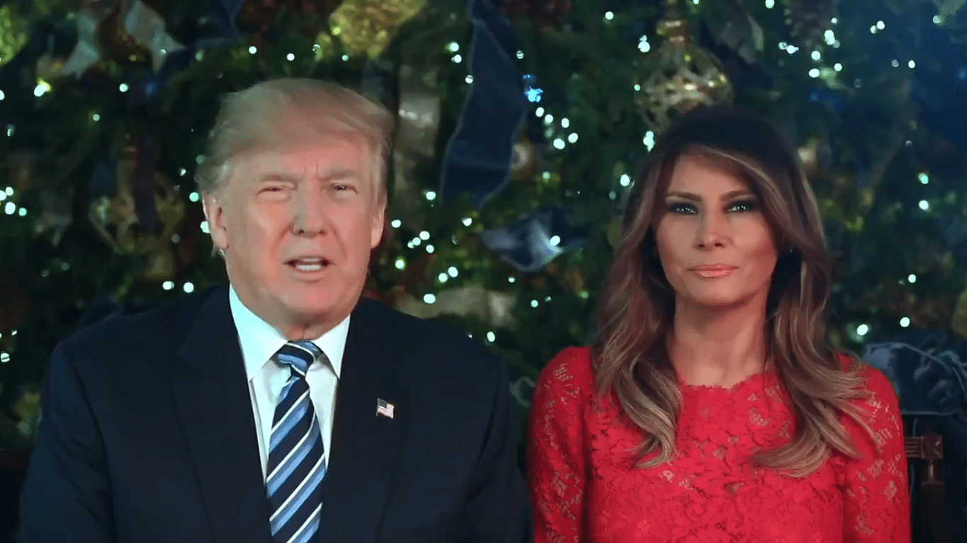 „În acest sezon al bucuriei, petrecem timp cu familiile. Reînnoim legăturile de iubire şi bunăvoinţă dintre cetăţenii noştri, şi cel mai important, sărbătorim miracolul Crăciunului. În numele Melaniei şi al meu, al lui Barron şi al întregii familii Trump, Dumnezeu să vă binecuvânteze, Dumnezeu să binecuvânteze America. Sa aveţi un Crăciun Fericit şi un An Nou fericit!”, a spus preşedintele SUA.