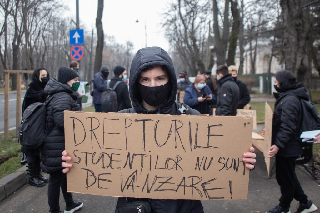 Alianța Națională a Organizațiilor Studențești din România a protestat în 18 februarie împotriva eliminării gratuității transportului feroviar pentru studenți.