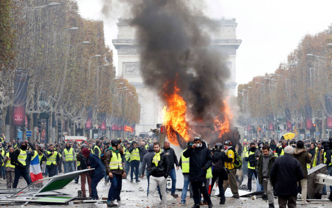 Ce s-a întâmplat de fapt sâmbătă pe cea mai frumoasă arteră din lume, Champs Elysées, nu a mai fost deloc o manifestare pașnică…așa cum fusese anunțată inițial. Vestelor galbene li se impută astăzi …totul: pietre din pavaj desprinse și folosite ca proiectile împotriva polițiștilor dar și a vitrinelor magazinelor din care s-a furat masiv; bănci rupte și folosite ca baricadă, arse ulterior; utilaje din construcțiile în curs devastate, dezmembrate…
