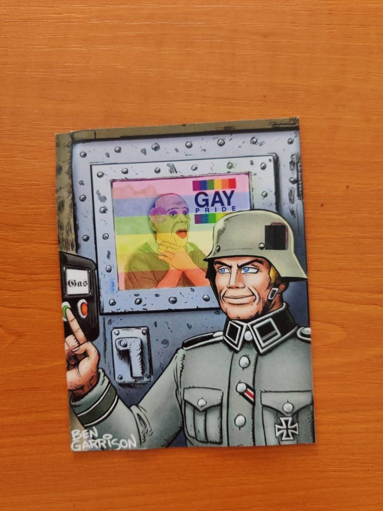 De asemenea, curtea sediului MozaiQ a fost „împânzită de pliante care ilustrau un bărbat gay care se sufocă într-o cameră de gazare, în timp ce un soldat cu simboluri naziste pe uniformă apăsa butonul de gazare”.