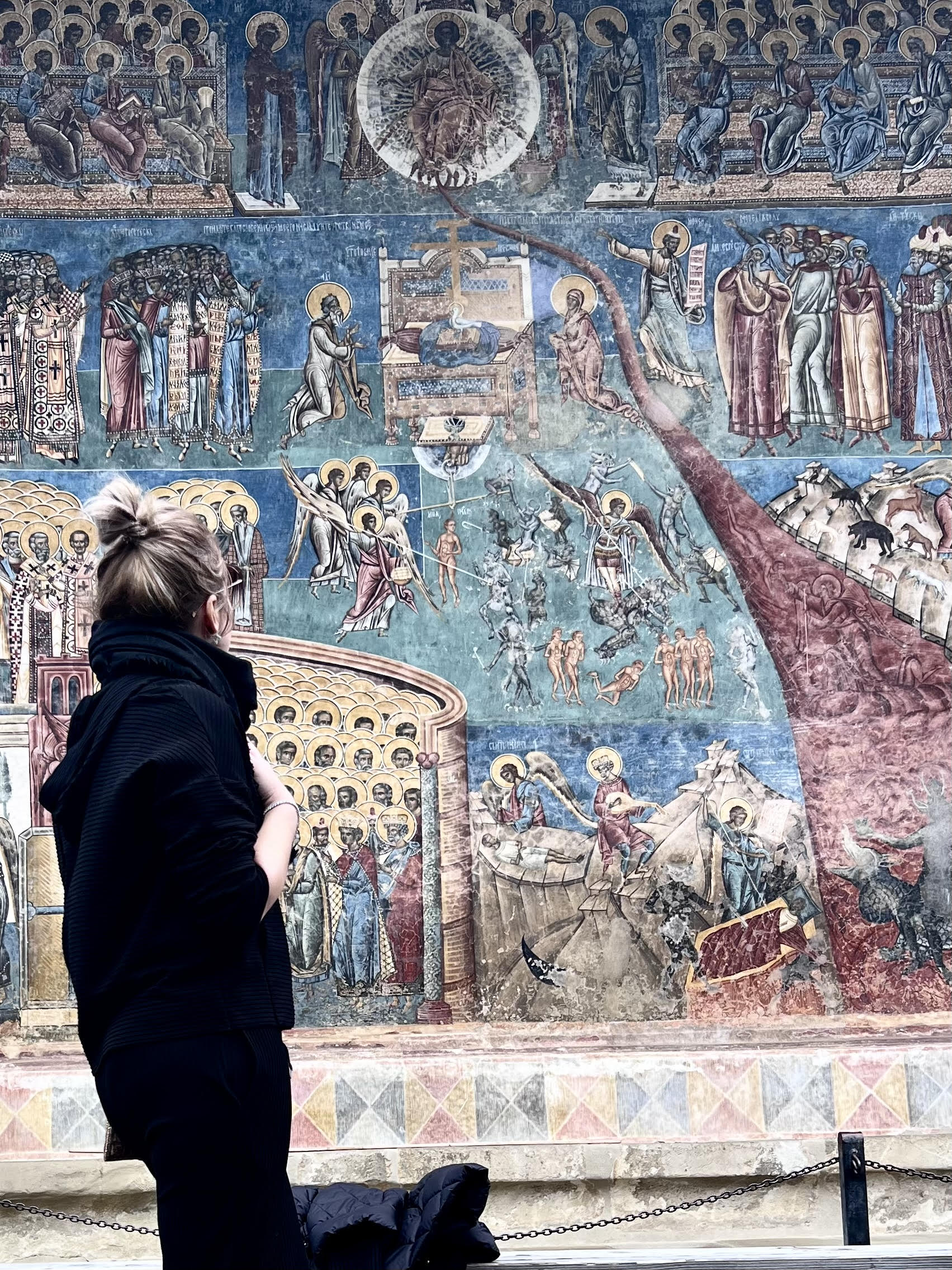 „Dumnezeu iubeşte pe toţi oamenii, dar iubirea Lui devine bucurie în cei care au răspuns iubirii Lui şi au împlinit voia Lui, şi devine mustrare de conştiinţă în cei care au refuzat iubirea Lui. Prin urmare, Judecata universală se petrece în conștiința oamenilor, aceasta fiind luminată, în Ziua de Apoi, de harul, dreptatea și iubirea lui Dumnezeu. De aceea, Dreptul Judecător din marea frescă de la Voroneţ nu este mânios, nu este încruntat, nu este tulburat, ci are chipul senin, o seninătate desăvârşită. În acest sens, chipul Dreptului Judecător de la Voroneţ contrastează cu faţa severă a Dreptului Judecător de la Capela Sixtină a Vaticanului”.