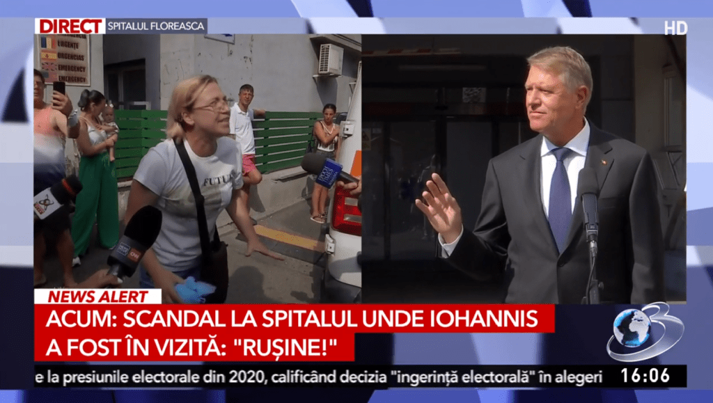 „Suntem umiliţi şi daţi afară din spital? Pentru ce? Ca să aștept să vină Iohannis şi mama sta de la 11 să aștepte salvarea să o ducă acasă? Nu m-ați lăsat cu o pereche de pampers să-i aduc să o schimbe și voi îl aplaudaţi pe Iohannis? Rușine poporului român rușine toleranței, rușine vouă că stați în tăcere și acceptați voi această umilință. Nu faceți nimic pentru noi și generațiile viitoare. Doar sunteți martori tăcuți. Rușine poporului român”, spune femeia revoltată care nu a fost lasată sa intre la mama ei, pe motiv că preşedintele Klaus Iohannis se află în vizită la victimele exploziei de la Crevedia, internate la Spitalul Floreasca.