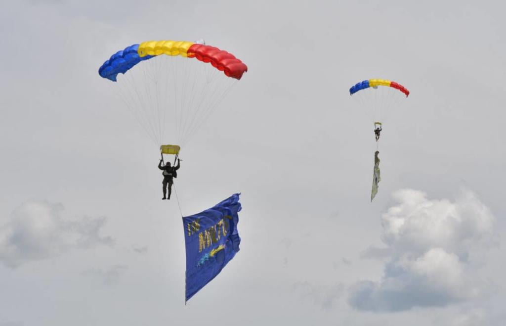 Seria parașutărilor a fost deschisă de colonelul parașutist Neculai Nuțu purtând drapelul Fundației General Grigore Baștan, drapel de cca 40 mp.