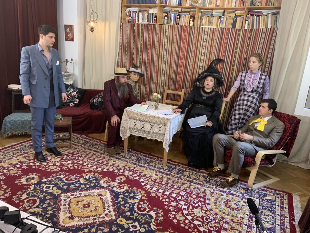 – N-a mai fost timp să găsim sală, decoruri și tot ce mai trebuie. Proiectul nostru a fost aprobat zilele trecute, iar dacă nu reușim să-l difuzăm până pe 28 iunie, ni se taie finanțarea. Ne-am gândit că, pentru refacerea atmosferei din roman, merită să ne punem casa la dispoziție. E cam strâmt, nu prea avem spațialitate, dar o să ne descurcăm.