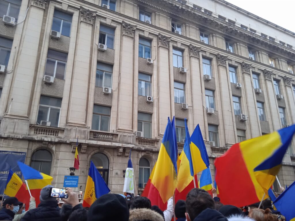 Alianța pentru Unirea Românilor a organizat în această după amiază un protest în fața Ministerului Sănătății. De acolo, protestatarii au pornit în marș către spitalul Matei Balș, locul unde ieri a avut loc un incendiu în urma căruia au murit șase persoane.