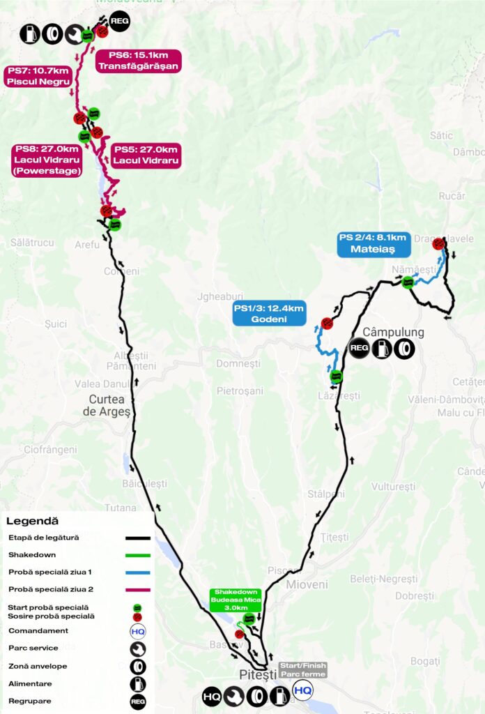 Traseul Raliului Argeșului străbate între județul de la Sud la Nord-Est și de la Sud la Nord-Vest.