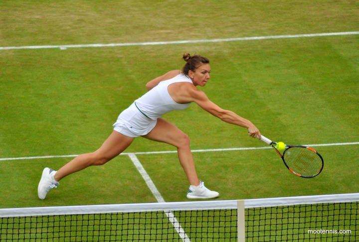 Echipamentul de joc al numărului 5 WTA este format din fustă albă cu dungă neagră în jurul taliei şi un maieu alb. Simona trece în acest fel de la costumaţia de zebră pe care a purtat-o la Roland Garros, şi care nu a fost una cu noroc, la un design clasic aşa cum cere tradiţia la Wimbledon.