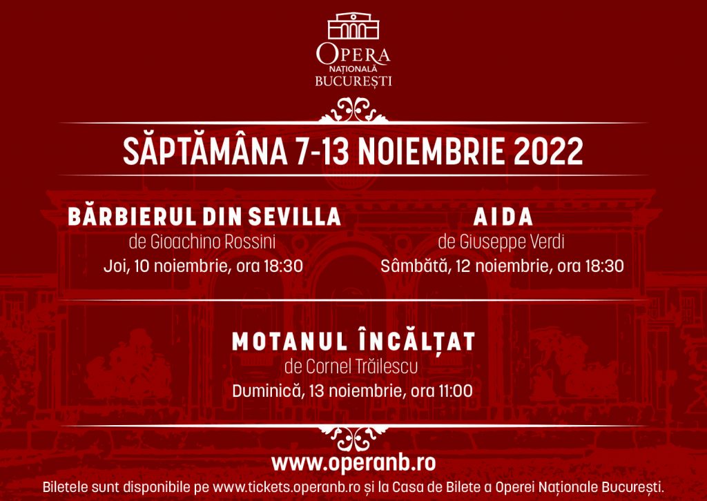 Cea de-a doua săptămână a lunii noiembrie aduce pe scena mare a Operei Naționale București două