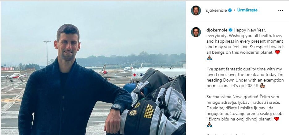 Novak Đoković înainte de îmbarcarea spre Australia, Foto: Instagram