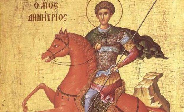 Sfântul Mare Mucenic Dimitrie, cinstit de creştini în 26 octombrie, a trăit în timpul împăraţilor Diocleţian (284-305) şi Maximian (286-305). Fiu al prefectului din Tesalonic, el a fost numit, datorită calităţilor sale, guvernator al Tesalonicului, după moartea tatălui său. Mai târziu, împăratul Maximian a aflat că Dimitrie este creştin, lucru care l-a mâniat foarte tare. Drept urmare, întorcându-se biruitor dintr-un război cu sciţii, Maximian a poruncit să se facă praznice în fiecare cetate, în cinstea zeilor. Venit la Tesalonic, împăratul l-a întrebat pe Dimitrie dacă sunt adevărate cele auzite despre el. Dimitrie a mărturisind cu îndrăzneală că este creştin şi a defăimat închinarea păgânească. Pedeapsa împăratului a fost maximă: Dimitrie a fost închis în temniţă şi ucis cu suliţa.