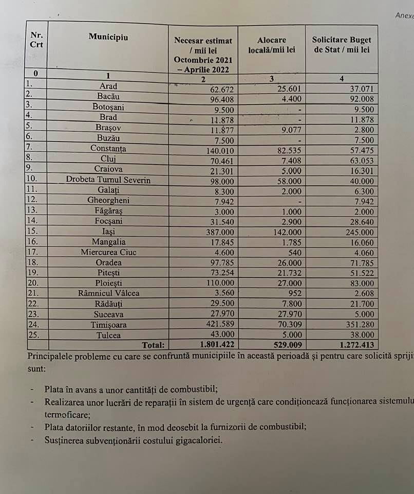 Mai jos aveți o listă cu solicitările făcute la guvern pentru ajutorul de încălzire. Vedeți cât a cerut Craiova și cam cum e situația la alte municipii, cum ar fi Iași sau Constanța, care nu au primari PSD. În fața unei situații atât de grave, mă așteptam ca să primeze interesul cetățeanului și nu cel politic. Norocul este că PSD, PER și dl. Dan Diaconu au înțeles și au votat astfel încât, de mâine, să nu ajungem ca Timișoara!”, a scris într-o postare pe Facebook primarul municipiului Craiova, Olguța Vasilescu.