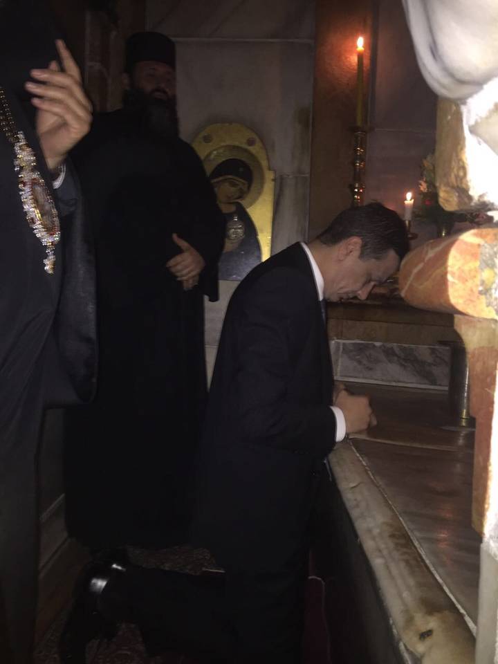 Premierul Sorin Grindeanu s-a recules la Mormântul Sfânt cu câteva minute în urmă, iar Patriarhul Theophilos i-a oferit Ordinul Crucea Ierusalimului. Grindeanu...