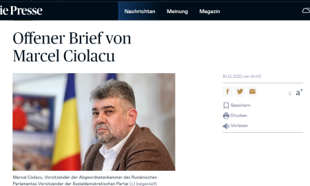 Președintele Camerei Deputaților, Marcel Ciolacu, a transmis, prin intermediul cotidianului Die Presse, cancelarului Karl Nehammer o scrisoare prin care a reiterat ideea...