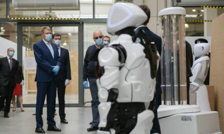 Președintele Klaus Iohannis a vizitat, astăzi, 24 aprilie, Unitatea de Suport Medical Bucureștii Noi, acolo unde a întâlnit și câțiva roboți „angajați”...