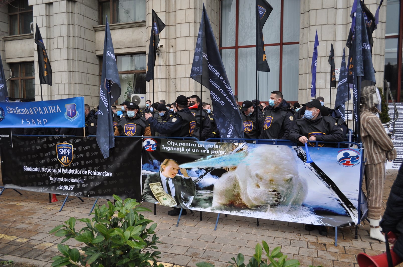 Tobele nu au lipsit de la protestul polițiștilor de penitenciare la Ministerul Justiției, 22 februarie 2021. Foto: SNPP Poliția Penitenciară, pagina de facebook