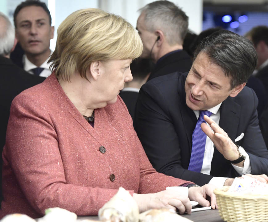 Simultan, Giuseppe Conte a fost filmat la Davos în timp ce îl „vindea” de Matteo Salvini cancelarului german Angela Merkel. În înregistrare, Conte „îl pârăște” pe Salvini că ar nutri sentimente antigermane și că ar fi „împotriva tuturor” și pare să implore sprijin pentru înlăturarea vicepremierului. Înregistrarea a făcut și ocolul televiziunilor italiene. Și mai surprinzătoare a fost prestația lui Giuseppe Conte la G7, când a stăruit pe lângă președintele Donald Trump (pe care l-a lingușit fără încetare) ca să nu introducă taxe pe mașinile germane care ajung pe piața americană. Ce alte înțelegeri oculte au avut loc la Biarritz este greu de precizat.