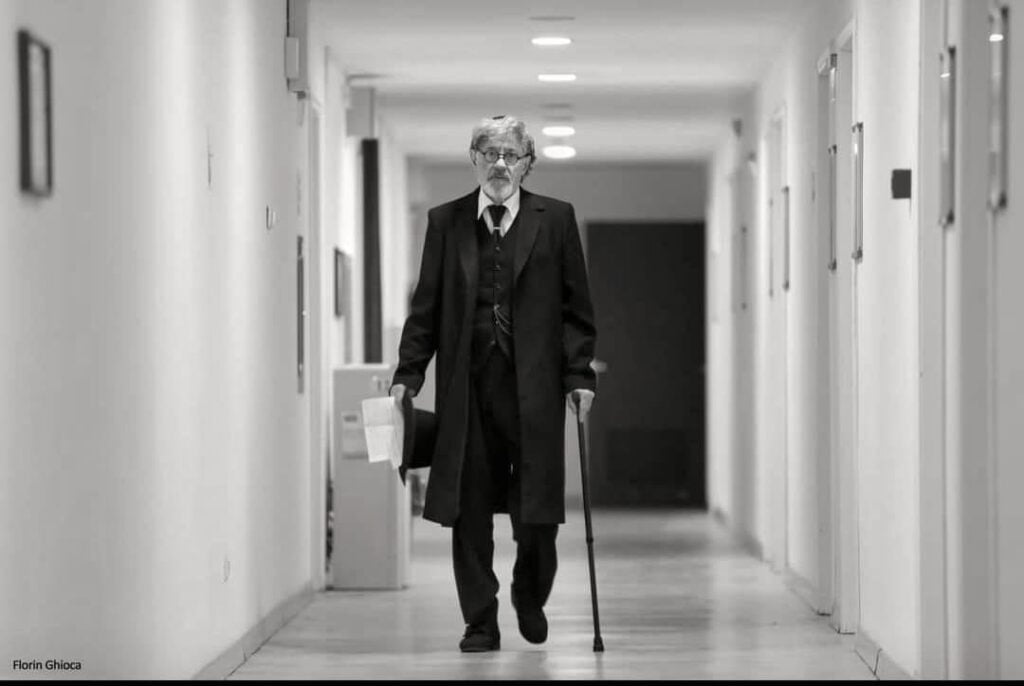 V.R.: Da, despre om, se vorbește deschis despre o problemă de care toate lumea se ferește să vorbească. Și în general, forma asta, boala asta, a pierderii identității, a memoriei, a legăturii cu cei dragi, e luată în râs. „E ramolit, are Alzheimer, ăsta nu mai știe ce spune.” Aici vezi lucrurile în desfășurare și sunt impresionante. Eu aud, nu văd în sală. Eu niciodată nu am văzut în sală, nu văd în sală. Mă uit pe deasupra. Ochii mei sunt închiși, eu am o cortină trasă pe ochi. Nu văd în sală! Și am prieteni care vin și spun: „Băi, te uitai la mine!” Eu nu văd! „Nu te-am recunoscut!” Dar mi se spune că la spectacol se plânge. E bine! Își mai clătesc ochii.