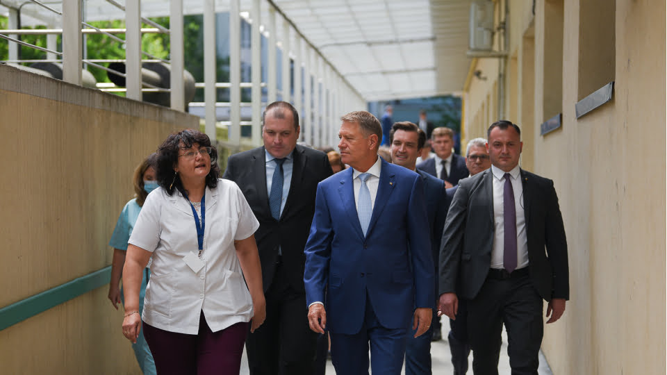 Preşedintele Klaus Iohannis a efectuat o vizită la Spitalul Clinic Colentina, cu prilejul Zilei Internaţionale a Asistentului Medical, la finalul căreia a făcut declarații jurnaliștilor. Foto Presidency.ro