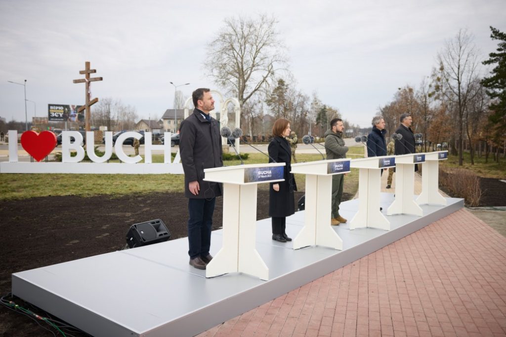 Mai mulți premieri și președinți au participat la Bucha alături de Volodimir Zelenski, pentru a marca un an de la eliberare Foto President of Ukraine